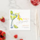 La serviette de demoiselle d'honneur présente un verre de margarita vibrant à l'aquarelle et une tranche de citron vert sur la gauche, capturant parfaitement le thème "Margs & Matrimony". Le design adopte un style minimaliste, avec des accents colorés qui équilibrent amusement et élégance, reflétant le ton de célébration de l'événement.