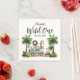 Ajoutez une touche amusante et sauvage à votre fête du 1er anniversaire avec ces serviettes Safari Wild One à thème Jungle Animals, parfaites pour le grand jour de votre petit aventurier. Composé d'un groupe d'animaux de safari ludique, dont un lion, un tigre, une girafe, un zèbre et un singe espiègle qui se promène dans une voiture tout terrain bleu turquoise, ce design apporte excitation et charme à votre table de fête. Un mignon petit tigre assis sur une souche d'arbre ajoute une personnalité supplémentaire, tandis que des palmiers vibrants et des feuilles verdoyants créent un cadre tropical animé. Conçues pour être à la fois élégantes et pratiques, ces serviettes sont un grand complément à tout thème de fête Wild One. La police neutre en gris foncé complète les couleurs inspirées de la jungle, ce qui les rend adaptées à la fois aux garçons et aux filles. De plus, vous pouvez facilement customiser le texte et les couleurs pour correspondre à votre décor de fête, assurant un look coordonné et personnalisé. Une façon amusante et fonctionnelle de garder les mains propres tout en ajoutant à l'ambiance festive!