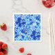 serviettes en papier dans une vintage impression florale William Morris de lys stylisés et d'Irises, numériquement rehaussées et colorées, dans les tons bleu cobalt profond, bleu cérulean, et bleu ciel clair sur un arrière - plan blanc