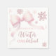 Winter onederland pink bow snowflake girl 1st birthday napkin.
