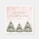 Serviette En Papier Winter Onederland Pink Bow Pine Trees 1st Birthday