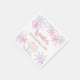 Winter Wonderland thème Baby showers serviettes de fête pour bébés filles. Ces serviettes sont parfaites pour les baby showers d'hiver. Le jeu de couleurs est très girly en rose et violet avec un peu d'or/parties scintillant de texte design. Serviettes de fête rose et violet baby shower avec de mignons flocons de neige. Illustration numérique de Kristine Lee. Pour en savoir plus, visitez le site www.kristineleedesigns.com