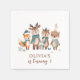 Featuring a charming hand-painted fox, deer, bear, bunny, and raccoon — all dressed in cozy winter scarves — this design creates the perfect warm and magical atmosphere for a winter birthday party.