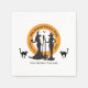 Créez votre propre business promotionnel ou votre propre bar swag pour l'événement Witches Walk de votre ville. Serviettes de cocktail en papier imprimées avec deux silhouettes de sorcière moderne élégante contre un arrière - plan orange. Accenté avec deux chats noirs. Tout le texte est modifiable pour les détails de votre événement. autres options de taille.