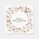 Delightful watercolor woodland baby shower napkins featuring adorable forest animals—bunnies, hedgehogs, squirrels, deer, bears, birds—in a whimsical circle with mushrooms, berries, florals, leaves, and soft foliage on clean white background. This enchanting gender-neutral design adds magical nature charm to every place setting! Soft hand-painted style elevates your Boho forest-themed party or woodland nursery event. High-quality, 3-ply disposable paper napkins (customizable colors/sizes)—perfect for tying the whole baby shower collection together with sweet, whimsical vibes!