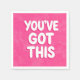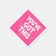Playful motivational text chunky rounded typography in white on pink textured background.