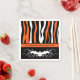 Un motif zèbre rayé dans les couleurs d'Halloween noir, orange et blanc avec une chauve-souris vampire frileuse et espace pour votre texte sur des serviettes en papier. Personnalisez avec votre propre texte.