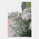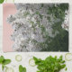 Joli floral blanc avec feuillage vert sur un arrière - plan de ciel rose.
