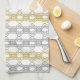 Un élégant motif de formes géométriques argentées et dorées, reliées par une série de serpentins linéaires en dentelle.