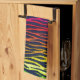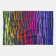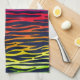 Serviette de cuisine rayée de zèbre multicolore d'arc-en-ciel. Vert rouge, orange, jaune, au néon, bleu, pourpre, roses indien, et motif de poster de animal de noir.