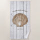 Personnalisez un cadeau de plage unique avec cette élégante serviette de plage Vintage Scallop Shell. Le design des serviettes de plage comprend une coquille de pétoncle vintage et du texte personnalisé que vous pouvez personnaliser avec votre nom de famille contre un arrière - plan en bois. Autres éléments de décoration disponibles avec ce design.