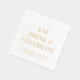Elevez vos événements mariages avec ces élégantes serviettes estampillées en feuille, parfait pour votre réception, dîner de répétition, soirée de fiançailles, douche à couple, etc. Chaque serviette est estampillée dans votre choix d'or, d'argent ou d'or rose pour une touche sophistiquée et dispose de "Manger, Boire & Célébrer" dans la typographie serif intemporelle et vos noms et date mariage dans le lettrage moderne propre.