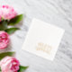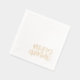 Joyeuses serviettes de fête en papier feuille d'or de Noël avec lettrage manuel amusant par Annie Montgomery Design.