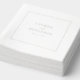 These wedding napkins feature a minimalist and elegant design with a clean, off-white background framed by a double border. The layout centers on refined serif typography in soft gray tones, creating a sophisticated and modern aesthetic. Perfect for adding a touch of calmness and refinement to your special day, these napkins emphasize simplicity through their use of negative space and lack of decorative motifs. Customizable text allows you to personalize the design effortlessly, making them ideal for weddings or significant celebrations.