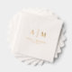 Serviettes mariages Monogrammes avec vos initiales personnalisées dans une typographie moderne et élégante, ainsi que les noms et la date en feuille d'or estampillée.