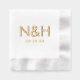 Des initiales de papier d'aluminium doré contemporaines et épurées associées à une esperluette et à la date du mariage créent un design de monogramme élégant sur ces serviettes de mariage modernes. La typographie sans empattement audacieuse sur un fond blanc croquant offre une esthétique fraîche et minimaliste parfaite pour le cocktail de votre réception ou le dîner de répétition. Personnalisez avec vos initiales et date.