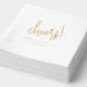 Une serviette classique et élégante en feuille de mariage avec un agencement simple avec "cheers" dans un script moderne et vos noms et date de mariage ci-dessous.
