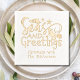 Seas And Greutages Beach Summer Christmas Custom Nom personnalisé Real Foil Stamped Napkins contient le texte "Seas and Greutts" dans une typographie de script moderne simple, accentuée par des coquillages et un cheval de mer festif avec votre nom personnalisé ci-dessous. Parfait pour les fêtes de Noël, les cocktails et les fêtes de Noël. Conçu par ©2024 Evco Studio www.zazzle.com/store/evcostudio