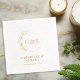 Cette élégante serviette en feuille d'or présente un design épuré et minimal accentué par un graphique d'une demi-couronne feutrée et le monogramme des couples, les noms et la date mariage.