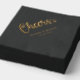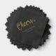Serviettes élégantes en feuille de mariage avec le texte "applaudissements" dans une police de script de calligraphie et les noms du couple et la date du mariage ci-dessous. Véritable feuille de texte sur un arrière - plan noir.