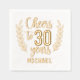 Cheers To 30 Years Trente Anniversaire Nom personnalisé Real Foil Stamped Paper Napkins présente le texte "Cheers to 30 years" dans la typographie de script de calligraphie moderne accentuée de feuilles floraux et personnalisée avec votre nom personnalisé ci-dessous. Parfait pour les fêtes du trentième anniversaire. Créé par Evco Studio www.zazzle.com/store/evcostudio