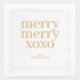 Cette belle serviette en papier, estampillée en feuille d'or, présente un élégant texte "joyeux xoxo xoxo" avec un modèle pour ajouter votre nom. Créez une serviette de table sophistiquée et intemporelle pour Noël avec ce design minimaliste. Recherchez ID1009 pour voir la coordination des produits avec cette conception.