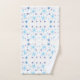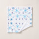 Ces serviettes de bain décoratives sont décorées d'un motif abstrait de bleu, de turquoise et de flocons de neige pourpres sur un arrière - plan de blanc de neige. Beau pour les vacances de Noël ou n'importe quand de l'année.