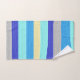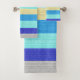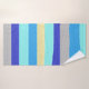 Serviette de bain rayée couleur bleu gras et doré cabane.