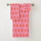 Une motif en dentelle orange vif orne ces serviettes de bain roses. Le design est issu de l'art original.