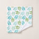 Joli ensemble de serviettes de bain, avec un motif vert menthe, vert olive et turquoise feuille de fougère, contre un arrière - plan blanc, sur le linge et la serviette de bain. Un ruban décoratif turquoise traverse les deux extrémités de la serviette de bain et descend verticalement en bandes vers le bas de la serviette.