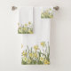 Ensemble de serviettes de bain à motif floral de jonquilles jaunes sur un arrière - plan blanc.