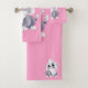 Serviettes de bain roses avec chien animal de comp