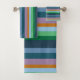 Joli rose, orange, vert, rayures bleues, inspirant, design d'été sur le kit de serviettes de bain.