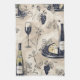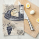 Un design chic et moderne de serviettes de cuisine avec d'élégantes verres à vin, des bouteilles de vin, des raisins et des plateaux de fromage, dressés contre un arrière - plan neutre pour une atmosphère sophistiquée