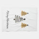 Cette serviette de cuisine est montrée dans un design imprimé d'arbres de fête. Colour Blanc Arbres imprimer en noir et or customiser cette serviette ou acheter comme indiqué.