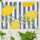 Avec des rayures et des citrons en bleu nuit et jaune vif, ces serviettes de cuisine réunissent les dernières tendances de la manière la plus jolie.