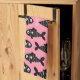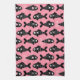 Un motif de poisson moderne et amusant à imprimer en bloc avec des rangées de poissons noirs sur un arrière - plan rose doux avec des pops occasionnels de queues roses. Un cadeau de serviette de thé idéal pour les amoureux de la vie marine! Petite échelle. Disponible dans d'autres couleurs