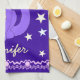Un chat pourpre de sourire de minou avec les yeux verts, un bon nombre d'étoiles chanceuses, serviettes de cuisine bleues de minuit avec l'équilibre rose, lettrage jaune pâle. Vous pouvez personnaliser ces serviettes de thé en remplaçant le texte actuel dans la zone de texte (IE Jennifer) par votre nom ou texte désiré. Employez la caractéristique de personnaliser pour changer la taille de la police, la couleur ou le style si désiré. Ayez un jour heureux !