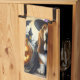Cette serviette de cuisine pour Halloween présente une photo adorable d'un chien déguisé en sorcière, avec chauves-souris et citrouilles. Le message sur la serviette dit, "Happy Halloween", une excellente façon de décorer pour la fête! Un trivet et un hot pad sont également disponibles dans le même design.