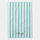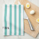 Serviette de cuisine Uff Da Verte à la menthe rayée par © Cathy Thompson. Vert classique et blanc avec lettrage noir. Parfait pour votre chef préféré.