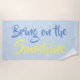 Profitez des mois chauds d'été à la plage. Bring on the Sunshine est écrit en bleu et jaune sur un arrière - plan bleu clair. Conception originale © TamiraZDesigns.