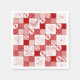 Fleurs en croûte en croûte en croûte en croûte NAPKINS-Un motif en numériquement couture en couture en alliage. Les couleurs sont le rouge et le blanc. Des carrés de conception rouge et blanche encadrés se remplissent entre les carrés plus grands cousus. Les plus grands carrés sont blancs et solides, parés de coutures numériques rouges avec une fleur cousue au centre. C’est une belle courtepointe botanique fleurie pour les amateurs de courtepointes. Il pourrait s'agir d'un design sympa pour les réunions d'été en plein air et même pour un usage quotidien. La coordination des fournitures de la partie Zazzle est disponible.