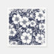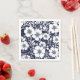 La serviette en papier pour fête est présentée en taille cocktail blanche avec une jolie impression florale bleu marine et blanc.