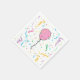 Il s'agit d'une serviette festive pour vos fêtes avec un ballon rose, des confettis et des serpentins.