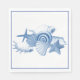 Cette serviette en papier blanche est illustrée d'une belle impression de coquillages bleus et blancs.