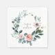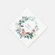 Serviettes en papier personnalisées avec une couronne de jardin élégante à l'aquarelle composée de roses roses pâles, d'anémones, de lisianthus blancs, d'eucalyptus bleu véritable et de feuilles de magnolia vertes. Le style et la couleur de la police de texte peuvent être personnalisés. Conçus pour correspondre à notre collection de mariage floral intemporel.