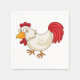 Ce dessin est un poulet de dessin animé. Le poulet est blanc avec la queue rouge et est debout sur le côté. Ce poulet est dans un style de dessin animé. Ce dessin de poulet caricaturé a l'air superbe sur ce papier serviettes