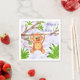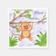 Des serviettes en papier mignonnes pour la fête d'anniversaire d'un enfant avec l'illustration fantaisiste d'un singe de la jungle et les mots "Joyeux anniversaire !" © ArianeC Illustrations