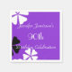 Un arrière - plan de violet profond aux fleurs noires et blanches décore cette serviette unique et amusante en papier de fête. Bien que la valeur par défaut indique "90e anniversaire", vous pouvez facilement modifier le texte pour le nom, le nombre d'années et l'événement. Très féminine et féminine ! Plaques de correspondance disponibles sur zazzle.com à SocolikCardShop. Tous droits réservés © 2015 Alan & Marcia Socolik.