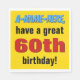 Ce design de serviette en papier à thème d'anniversaire accrocheur et audacieux comporte un message comme "A-Name-Here, have a great 60th anniversaire!", où le nom et le numéro d'anniversaire peuvent être personnalisés. Des serviettes en papier comme celles-ci pourraient être utilisées lors d’une fête organisée pour célébrer l’anniversaire de quelqu’un.